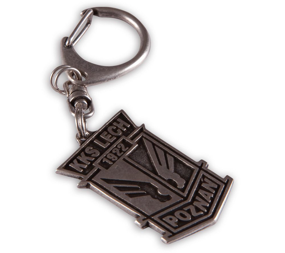 Metalowy breloczek Lecha Poznań w kształcie herbu. Sprawdzi się jako zawieszka do kluczy, plecaka czy upominek dla bliskiej osoby.