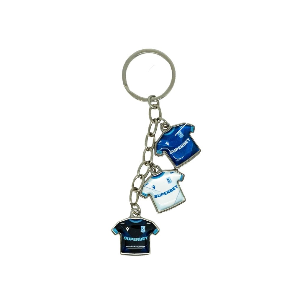 Breloczek z motywem trzech koszulek meczowych na sezon 2023/2024.