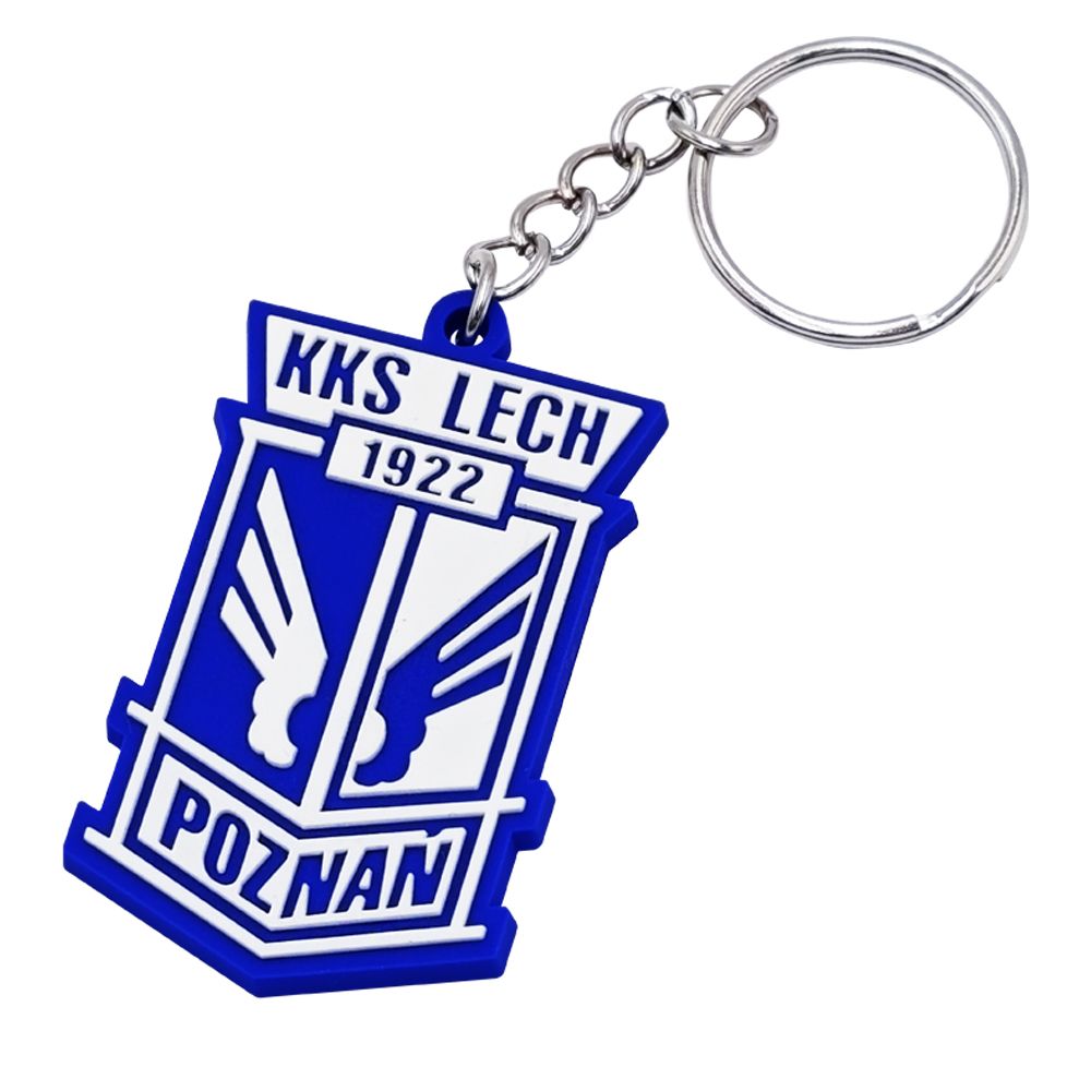 Silikonowy breloczek w kształcie herbu Kolejorza, na jego odwrocie znajduje się napis "Lech Poznań"