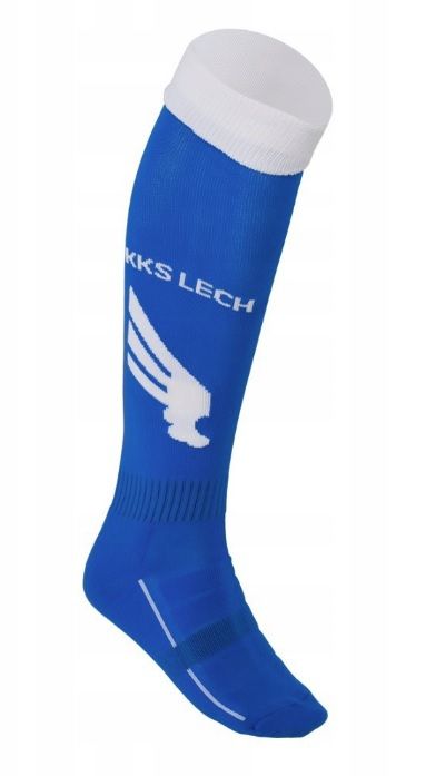 Piłkarskie getry z motywem skrzydełek z herbu Lecha Poznań. Wytrzymałe, idealnie nadają się na trening. Szeroki ściągacz zapobiega zsuwaniu się getry z nogi. Dostosowują się do stopy dając swobodę ruchu i komfort noszenia.