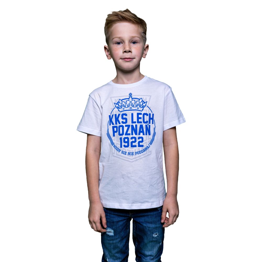 Niebieskie nadruki zostały umieszczone na konturze Herbu, co sprawia, że koszulka stanowi zgraną całość i dobrze się prezentuje.