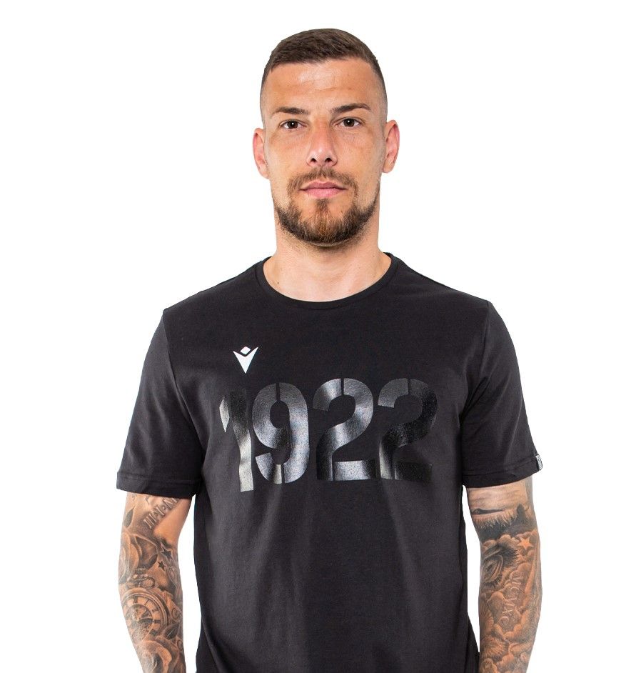 Bawełniana koszulka firmy Macron z dużym nadrukiem daty powstania klubu - 1922.