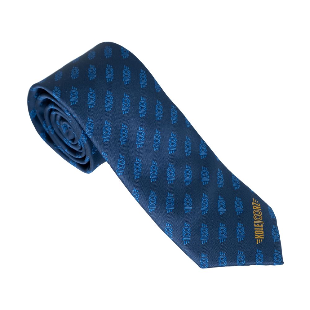Elegancki wąski krawat zdobiony motywami na 100-lecie Klubu.