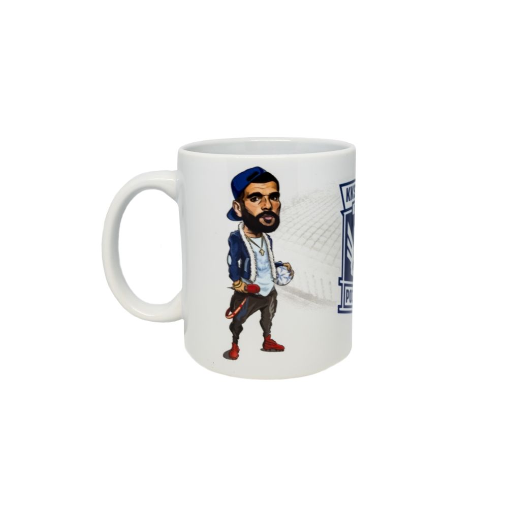 Ceramiczny kubek z karykaturami Mikaela Ishaka i Pedro Rebocho.