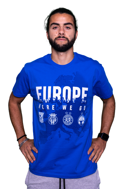 Klasyczna, niebieska koszulka, zaprojektowana z okazji występów Lecha Poznań w Lidze Konferencji. Na przodzie koszulki znajduje się mapa Europy wraz z herbami klubów z grupy C, w której występuje Kolejorz.