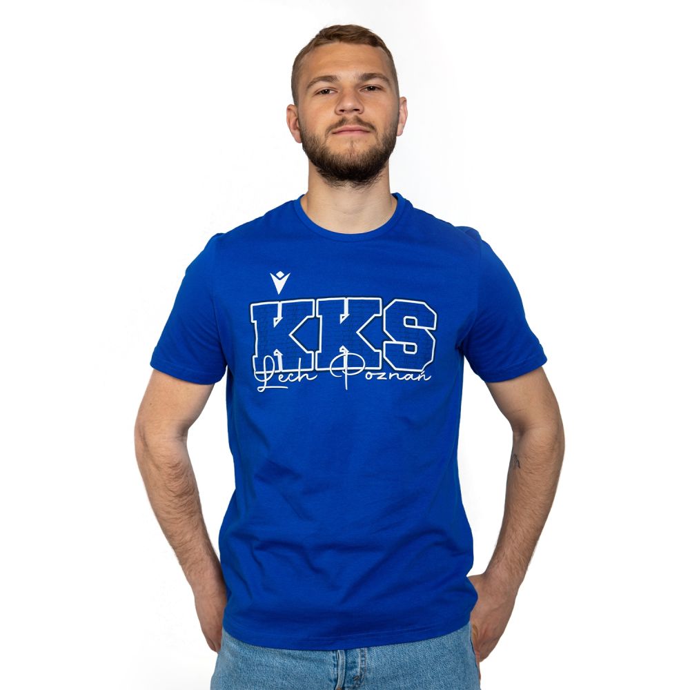 Bawełniana koszulka firmy Macron z dużym nadrukiem KKS i subtelnym napisem Lech Poznań.